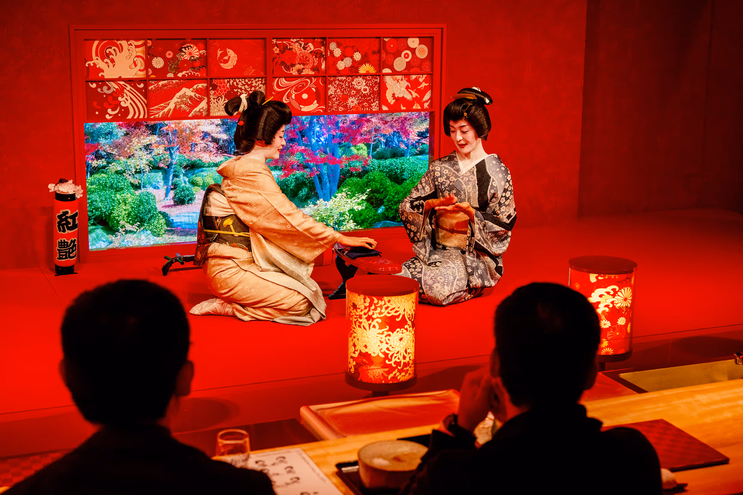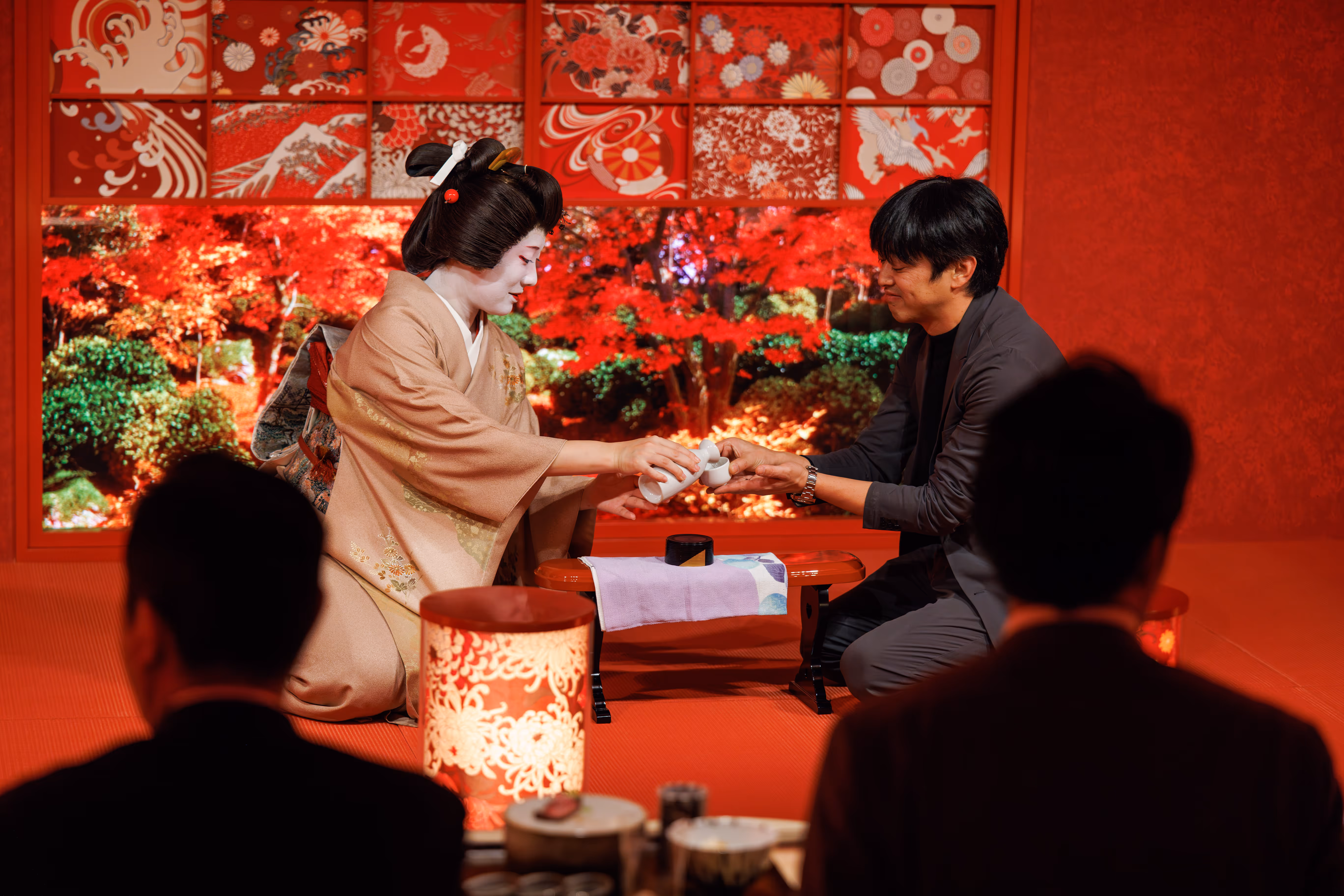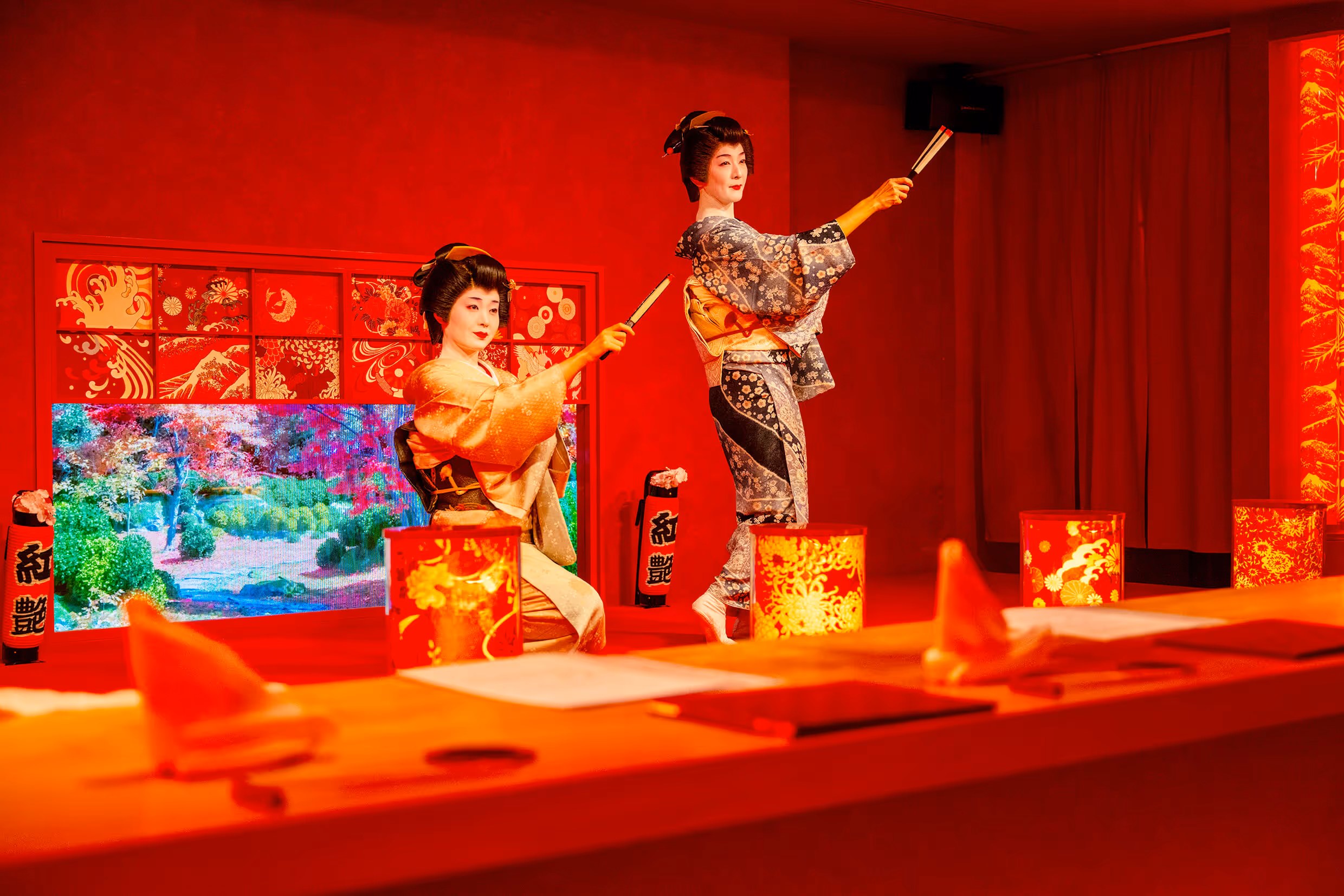 Step into a reimagined hanamachi (geisha district) brought to life in the Reiwa era. Savor authentic kaiseki cuisine, crafted with seasonal finesse. Be captivated by the graceful dance of geisha, and immerse yourself in an evening where tradition and elegance meet. In this radiant setting, experience a truly special night of Japanese beauty and refinement.